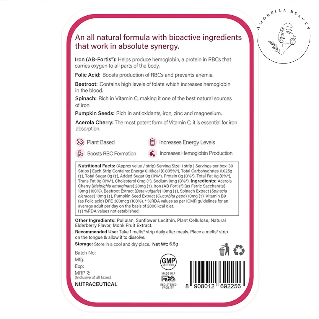 | نوع عصاره یا ترکیبات خاص | آهن میکروانکپسوله (AB‑Fortis®) فولیک اسید (Folic Acid) چغندر، اسفناج، Swiss Chard Acerola Cherry (ویتامین C طبیعی برای افزایش جذب آهن) دانه کدو تنبل (منبع مواد معدنی) |