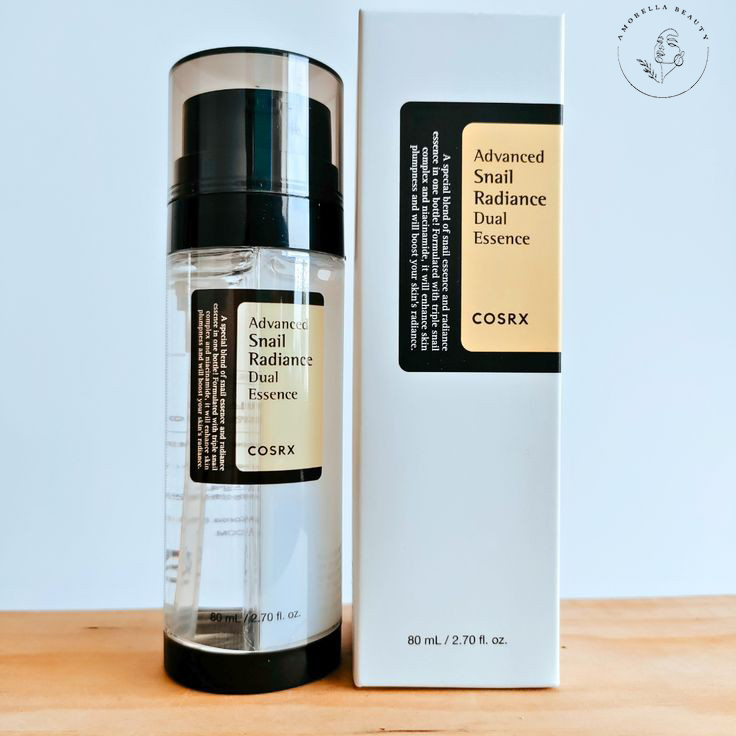 ‎اسنس دوگانه روشن کننده و افزایش دهنده خاصیت ارتجاعی موسین حلزون کوزارکس مدل Dual مناسب تمام انواع پوست حجم ۸۰ میل   (COSRX Advanced Snail Radiance Dual Essence) یک اسنس دو فازی حرفه‌ای است که دو فرمول تخصصی را در یک پمپ ارائه می‌کند تا آبرسانی عمیق، افزایش کشسانی پوست و روشن‌کنندگی همزمان ارائه دهد.
