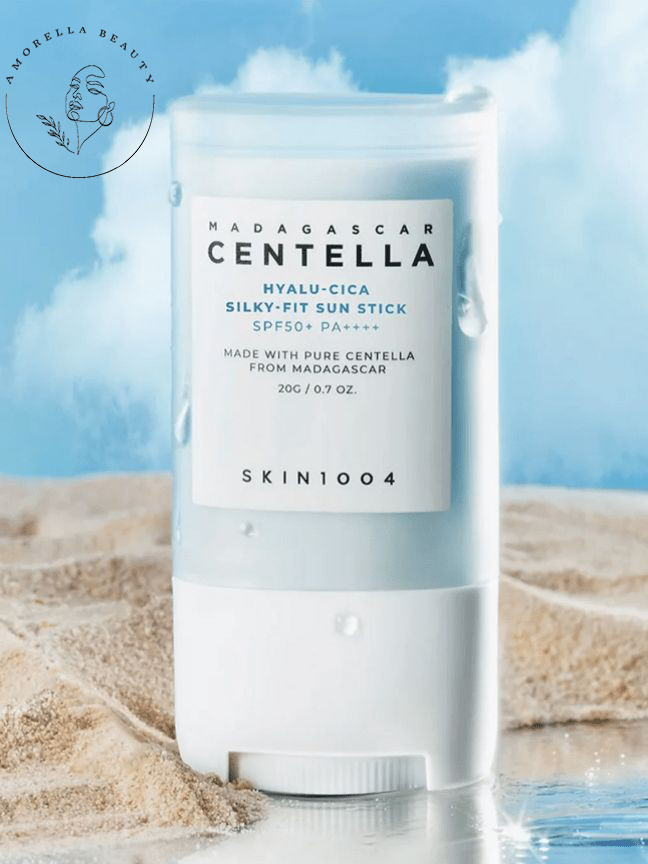 ضدآفتاب استیکی آبرسان سنتلا اسکین 1004 با SPF50+، محافظت قوی در برابر UVA و UVB، بافت سبک و بدون رد سفید، مناسب استفاده روزانه و حمل آسان.